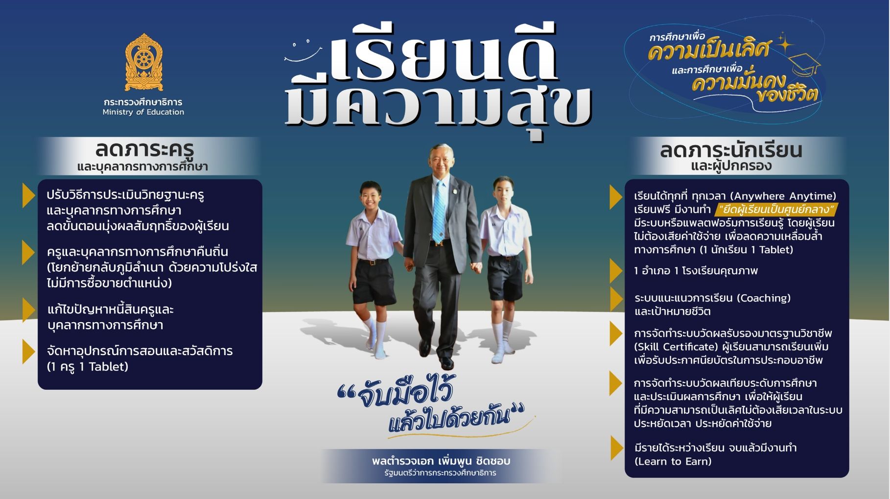 รมว.ศธ.แถลงนโยบายการศึกษา “เรียนดี มีความสุข”